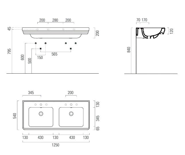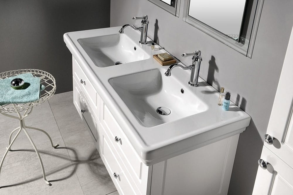 Z otworem na baterię w obu umywalkach (przygotowane na 3 otwory)
