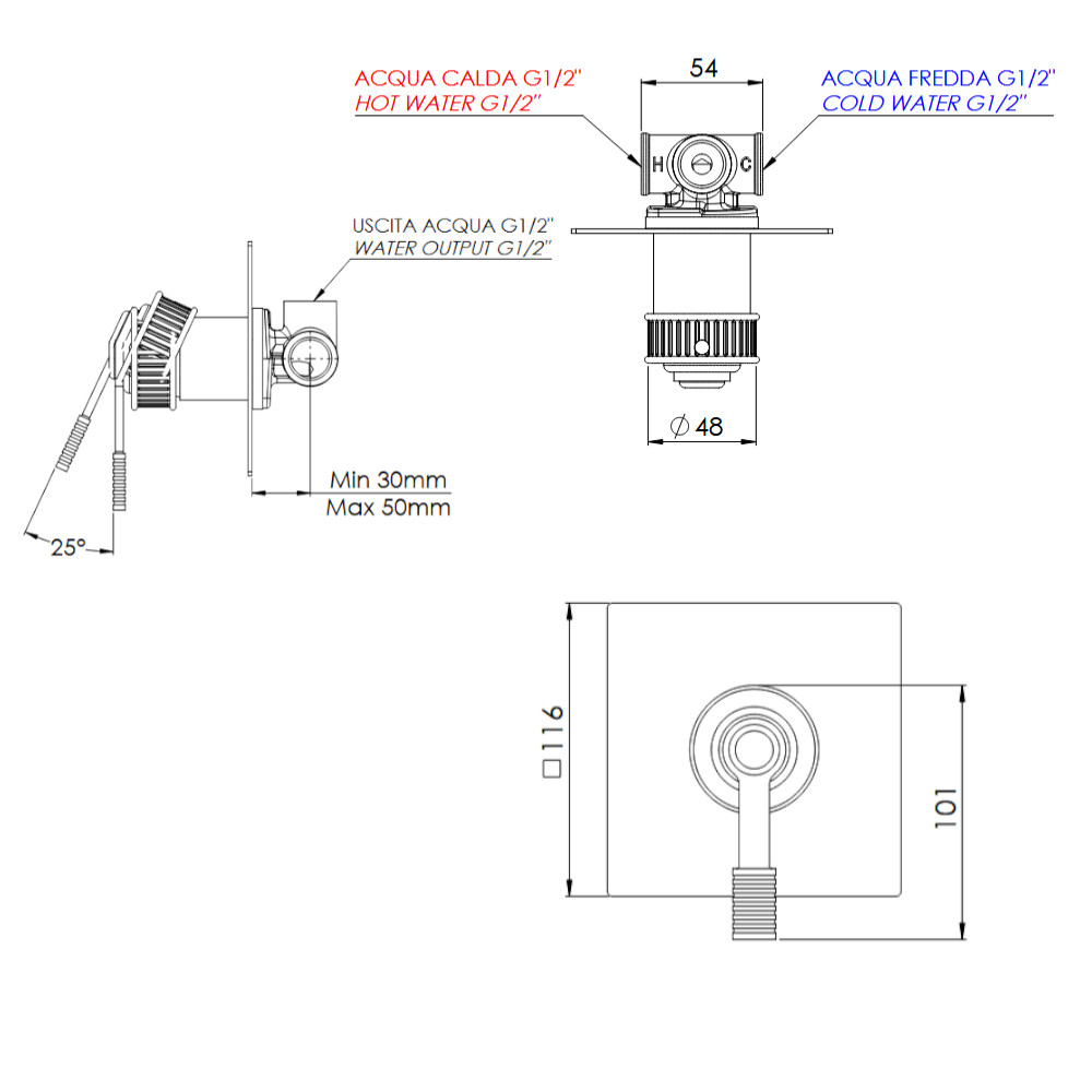 Remer Atelier Bateria natryskowa podtynkowa Chrom AL30Q