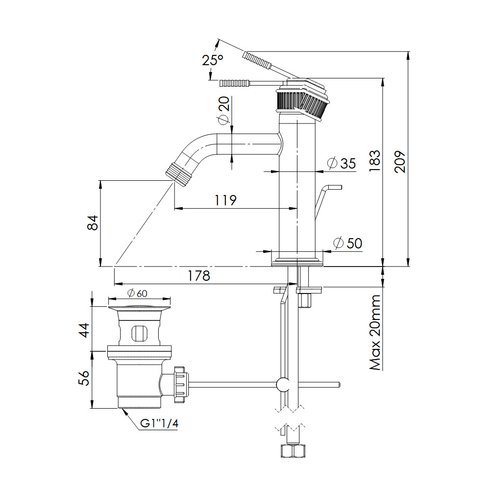 Remer Atelier Bateria umywalkowa jednouchwytowa z korkiem automatycznym Chrom AL10