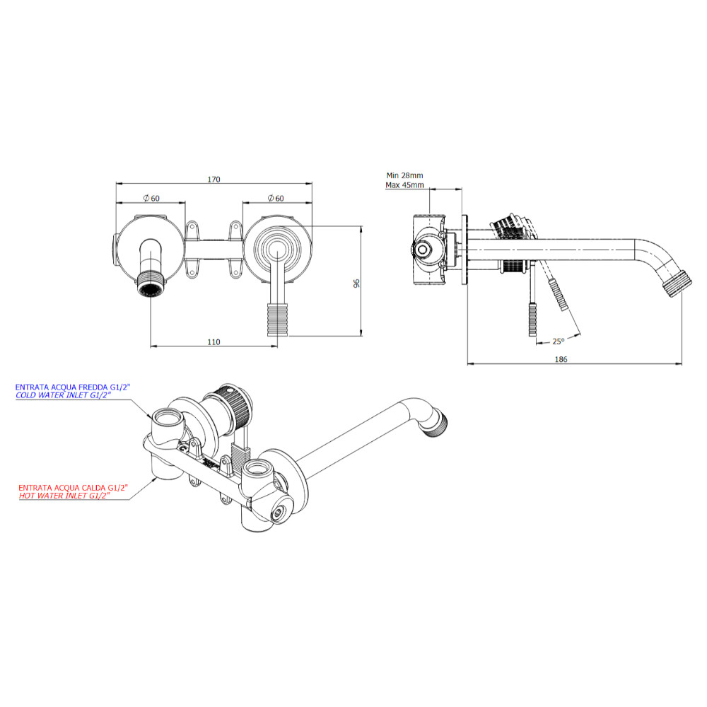 Remer Atelier Bateria umywalkowa podtynkowa jednouchwytowa 180 mm Chrom AL15PL