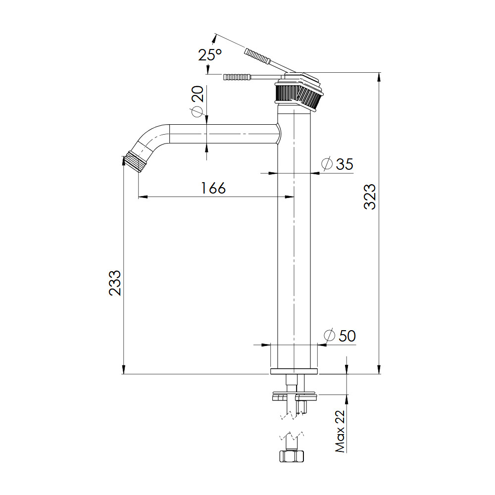 Remer Atelier Bateria umywalkowa wysoka jednouchwytowa bez korka Visual Inox AL11LXLXV