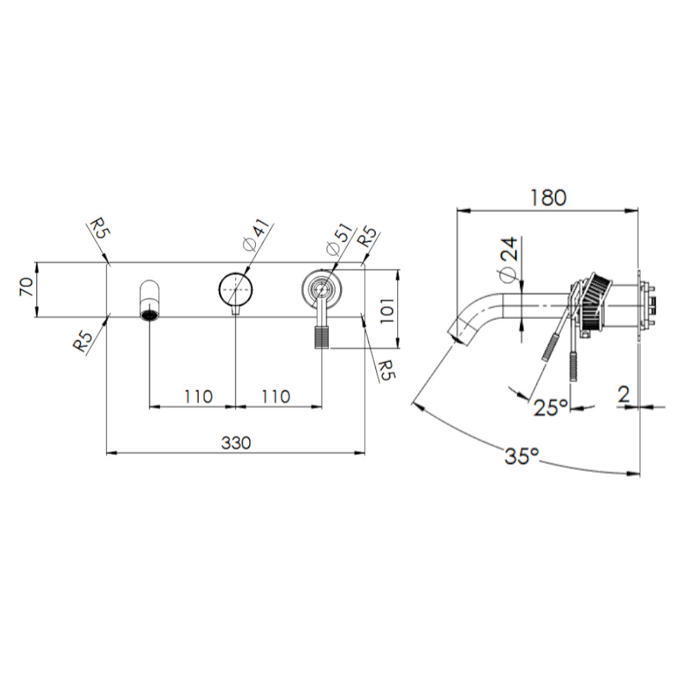 Wysięg wylewki: 180 mm