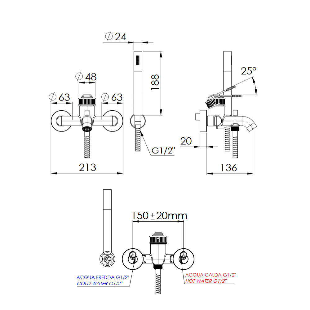 Remer Atelier Bateria wannowo-natryskowa ścienna z zestawem natryskowym Visual Inox AL02XV