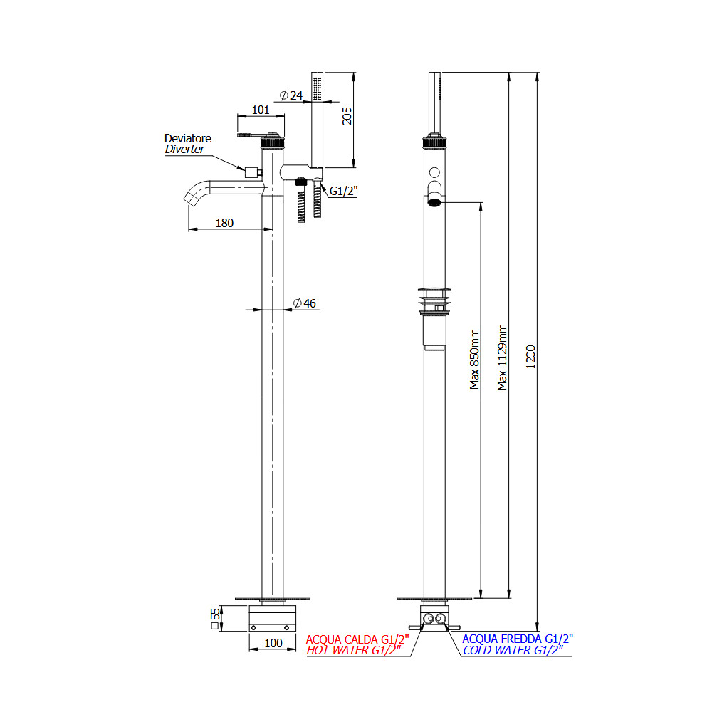 Remer Atelier Bateria wannowo-natryskowa wolnostojąca z zestawem natryskowym Chrom AL08