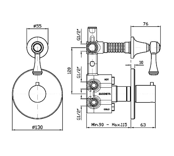 Zucchetti Agora Bateria natryskowa termostatyczna podtynkowa 1/2" z zaworem odcinającym element zewnętrzny chrom ZAL659