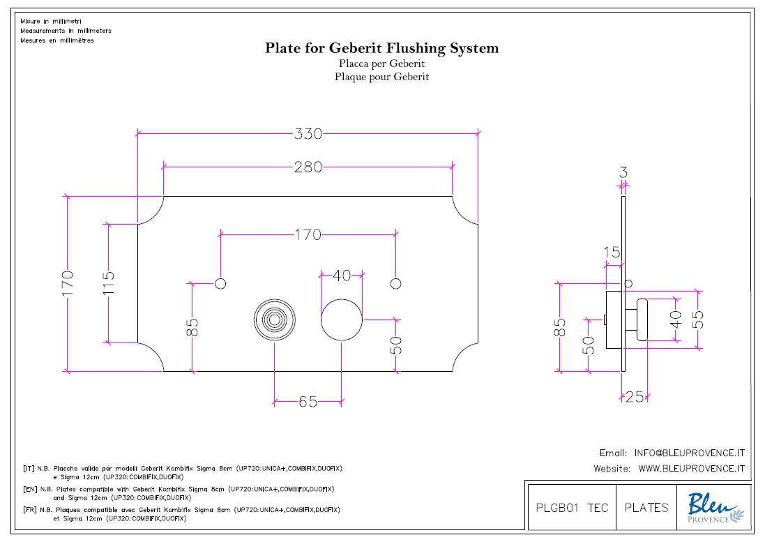 Produkt kompatybilny z sytemami: Geberit Kombifix Sigma 8 cm (UP720: UNICA+, COMBIFIX, DUOFIX) Sigma 12 cm (UP320: COMBIFIX, DUOFIX).