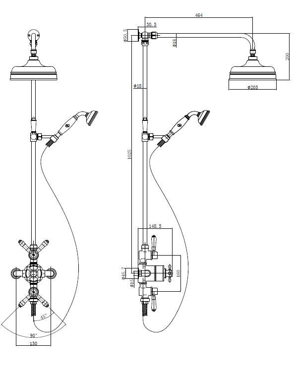 Ramię prysznicowe: 46,4 cm