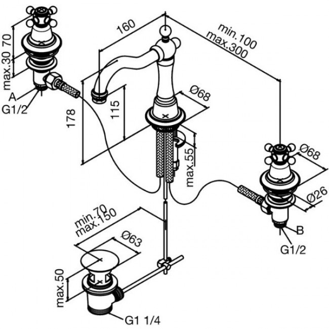 Damixa Tradition Bateria wannowa 3-otworowa chrom 37078.00Wykończenie: chromStandardowe wyposażenie• Głowice ceramiczne• Korek automatyczny
