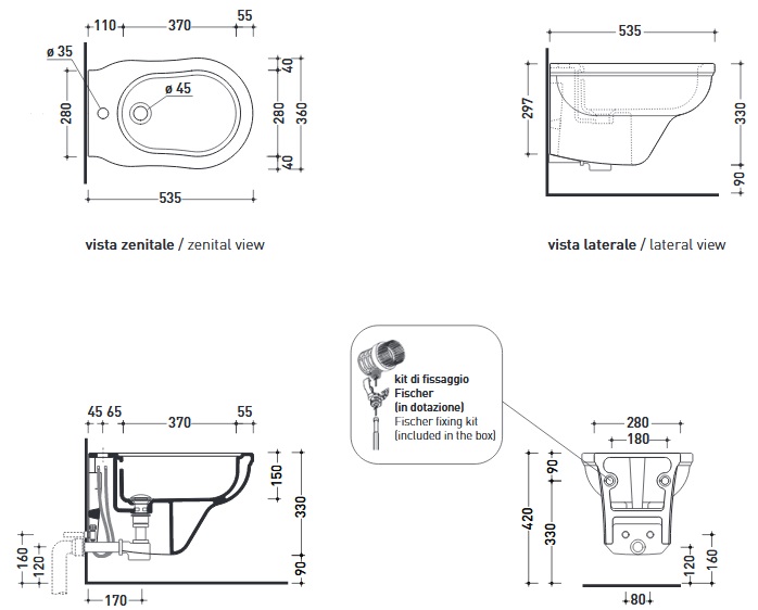Flaminia Efi Bidet wiszący 53,5 cm biały EF218Kolor: biały produkt można zamówić również w opcji kolor za dopłatą, informacje dostępne u obsługi sklepu Wymiary: Szerokość: 36 cm Długość: 53,5 cm Wysokość: 33 cmBidet z 1 otworem na baterię cena dotyczy bidetu z zestawem 9004.